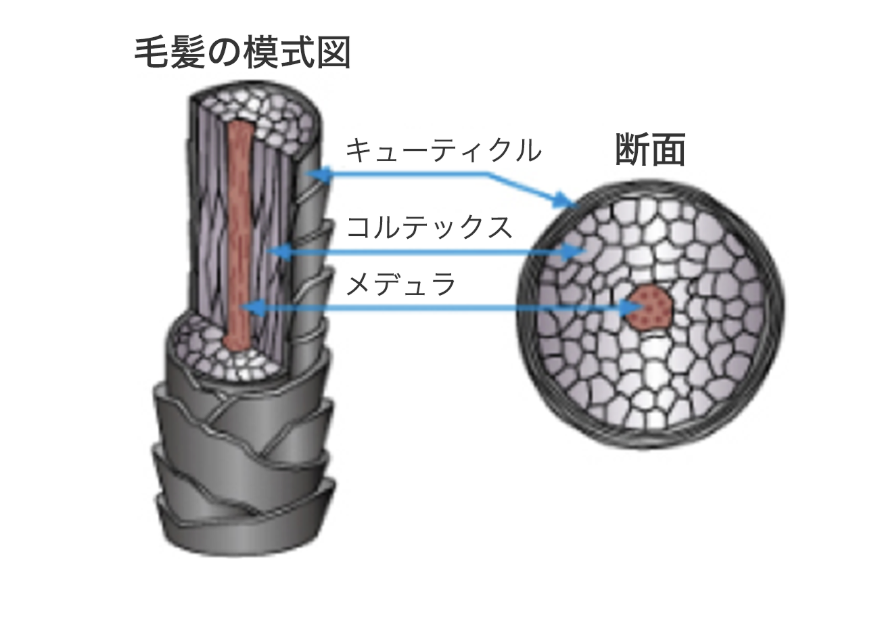 髪の主成分はたんぱく質(ケラチン)です。加齢により髪の生成力が落ちると、髪の芯であるコルテックスの密度が低くなり、内部がスカスカな「空洞化」状態に。