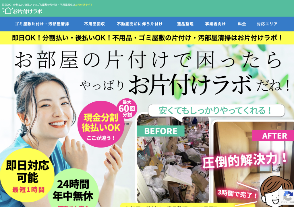 自力での解決が難しいレベルの汚部屋や、大型家具などの不用品がある場合は、迷わずプロの手を借りましょう。