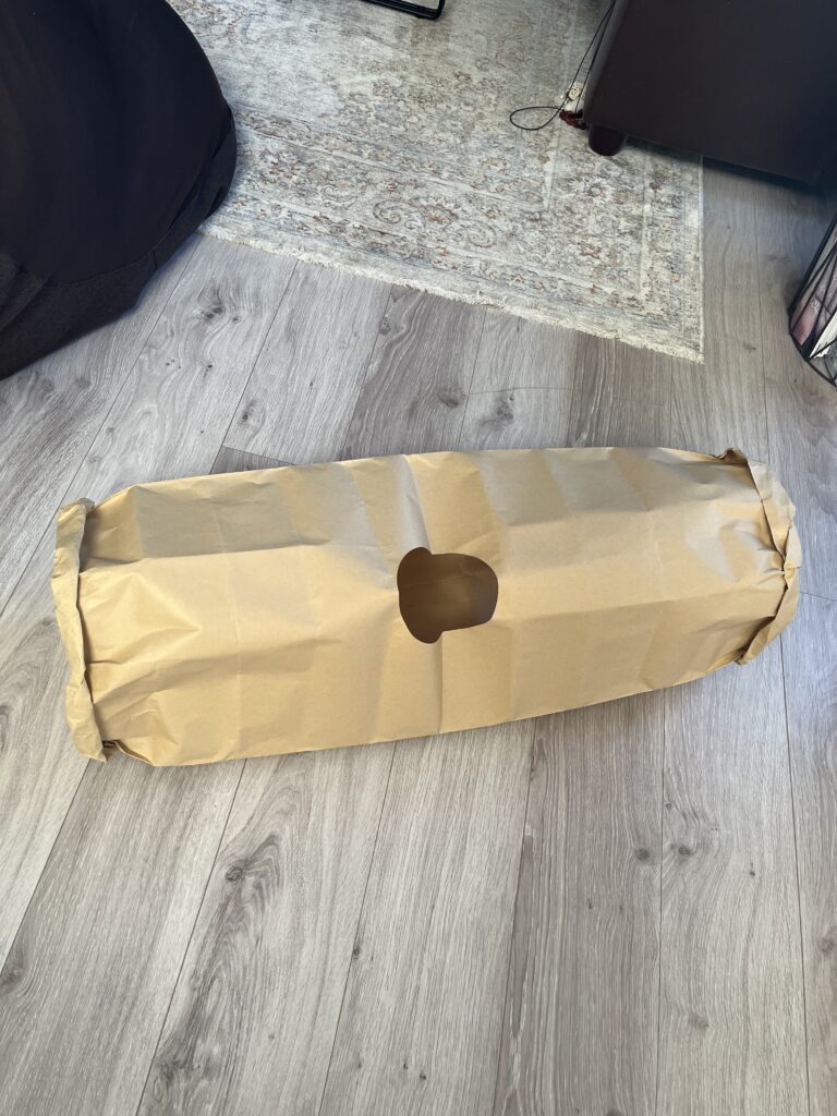 直径25cmはラグドールにとっては少し窮屈だったようで、中に入ることを早々にあきらめてしまいました。「うちの子、大きめだな」と感じている飼い主さんは、もう少し大きいサイズのトンネルを選ぶ方が良いかもしれません。 - 紙製なので耐久性は高くありません。 しっかりした紙質ではありますが、猫が爪を立てたり激しく遊んだりすればそれなりに消耗します。