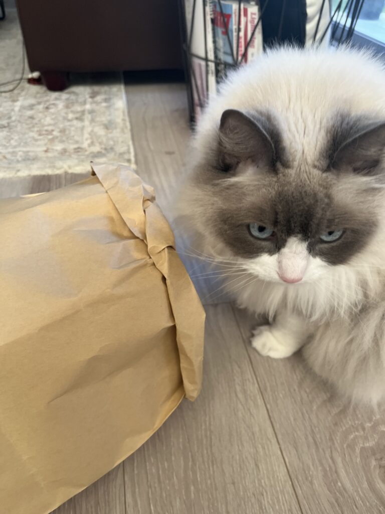 早速、我が家のラグドールさんにお披露目してみます。